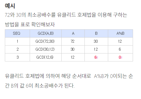 ex) 72 와 30의 최대공약수는 6이다.