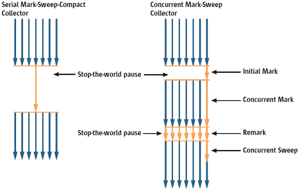 CMS 방식에서는 컴팩션을 지원하지 않는다. 그러므로 다른 옵션을 사용하여 메모리를 모아주는 작업이 필요.