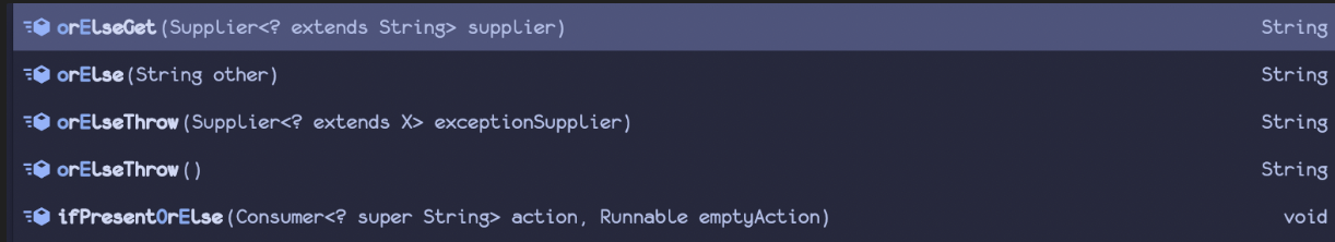- Optional의 쓰이는 메소드로서 체이닝 형식으로 사용되어 질 수 메소드이다.